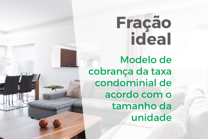 A fração ideal é o quanto do condomínio pertence a cada unidade, somando a parte comum e a parte privativa. Isso quer dizer que unidades com maior área privativa (e consequentemente maior fração ideal) vão pagar mais do que unidades menores. Por exemplo, se houver uma cobertura de 200 m² e um apartamento de 100 m² no mesmo edifício, a cobertura pagará uma taxa maior, proporcional à sua fração ideal.